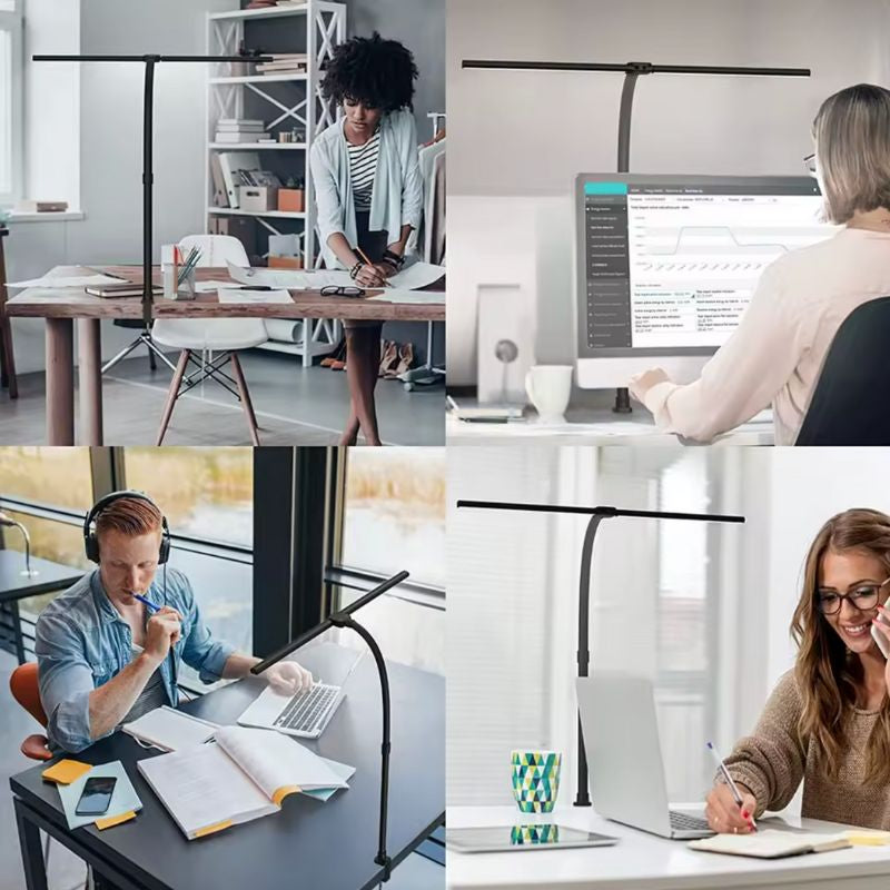 The Architect Desk Lamp Clamp is the perfect way to brighten your entire workspace. Featuring an ultra-wide 31.5-inch, 24W LED light bar, this tall desk lamp delivers full-coverage illumination—ideal for multi-monitor setups. Its sleek, space-saving clamp design keeps your desk clear, while the adjustable arm lets you position the light exactly where you need it