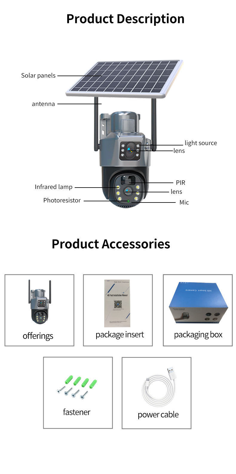 Dual Power Source: Solar panel and built-in battery enable continuous outdoor operation