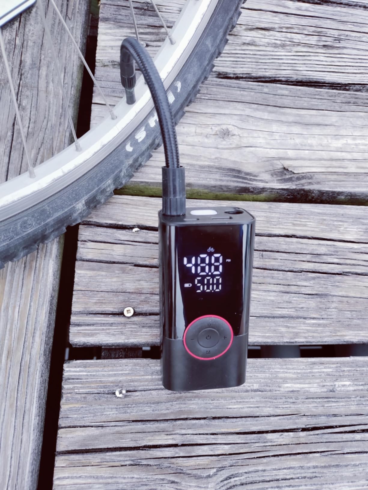 Wow, this portable pump is amazing! It filled my tires quickly and comes with extra attachments—I’m sure it’ll work great for sports balls too. Highly recommend! 10/10!